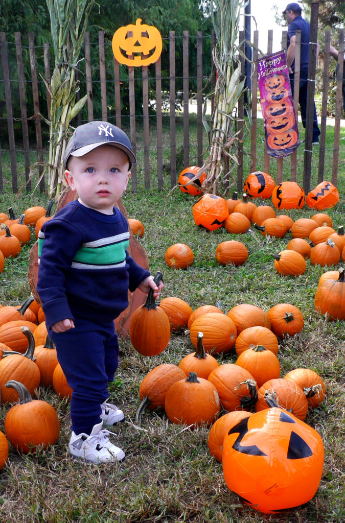 Billy Hunter couldn’t make up his mind while searching for the perfect pumpkin in the patch, as little Erin O’Brien seemed overwhelmed by her surroundings.