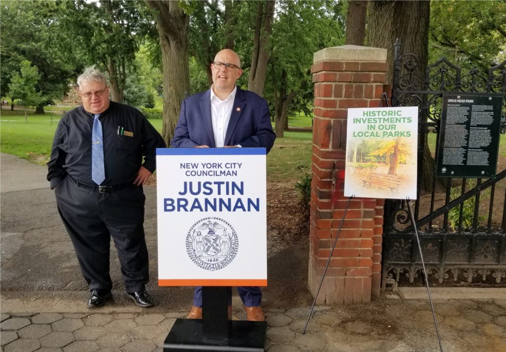 On Thursday, Brooklyn Parks Commissioner Martin Maher and Councilmember Justin Brannan were at Owl’s Head Park at 68th Street and Colonial Road to announce that more than $30 million in improvements will be made to parks and playgrounds in the 43rd District.