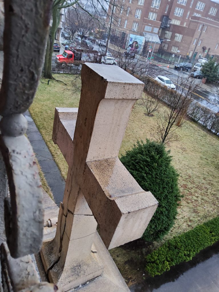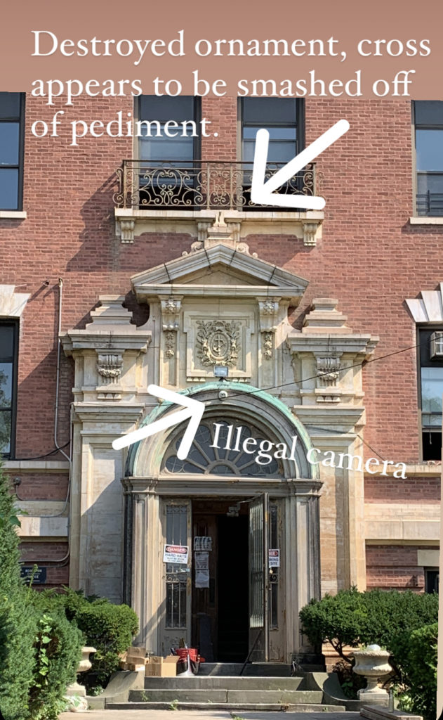 Carroll — who alerted the Landmarks Preservation Commission (LPC) to what she saw – said that when formerly religious buildings in New York City change use, “There is a respectful and dignified process to remove religious iconography. The destruction precludes any chance of the stonework being stored off site or being put in a museum in the future.