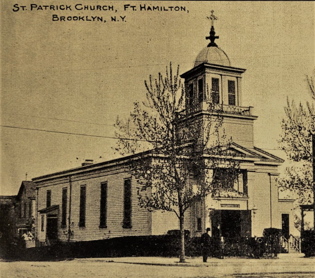 St. Patrick’s is the oldest Catholic congregation in Southwest Brooklyn. The first mass took place in 1843 at the Cummins’ family barn at 99th Street (then called Clark Street) and Shore Road. Later, holy services were held in the home of Peter Murphy on Fort Hamilton Avenue (now Parkway) near 95th Street (then known as Lafayette Street). In 1849 the St. Patrick’s Mission was established, and by 1852 a plot of land was secured and a wood frame church was erected on the southwest corner of Fifth Avenue and Lafayette Street.