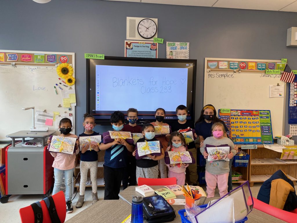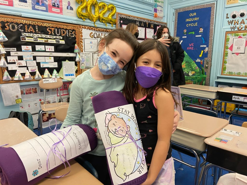 The kids attached handwritten letters of encouragement to 85 blankets that were sent to homeless Brooklynites from the nonprofit group Blankets of Hope.