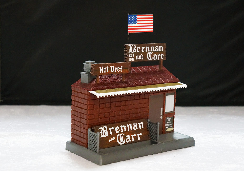 Jack Giambanco has been making models of popular Brooklyn restaurants and food businesses, such as Brennan and Carr, 3432 Nostrand Ave., and A&S Fine Foods Meat Market, aka A&S Pork Store, 361 Avenue X, out of earth-friendly plastic derived from corn, using computer-aided design.