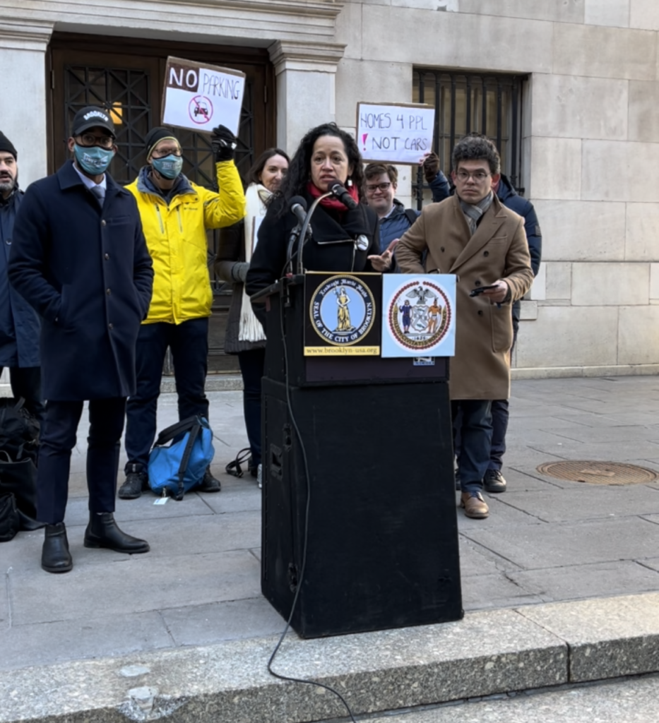 Currently, most new residential development in Brooklyn requires developers to build off-street parking in both as-of-right and rezoned development sites. The elected officials expressed support for ending parking minimums in a comprehensive text amendment.