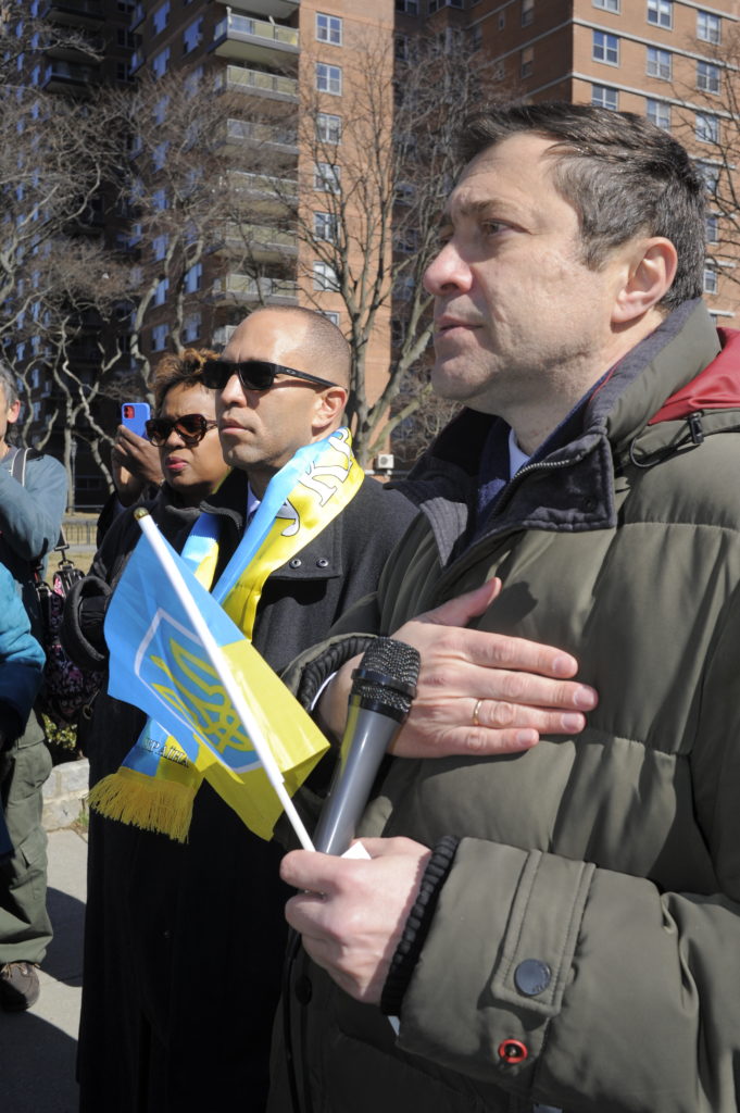 U.S. Rep. Hakeem Jeffries and state Sen. Diane Savino attended the rally, as did Councilmember Inna Vernikov, who was born in Ukraine.
