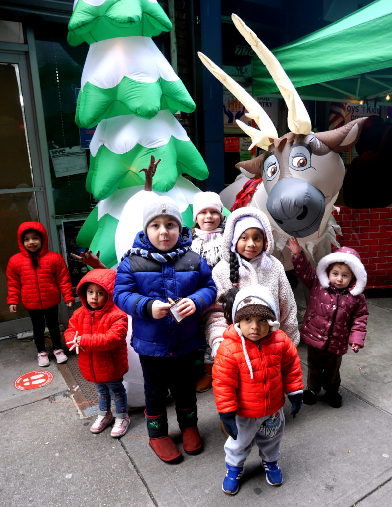 Santa Claus and Mickey Mouse were among those who helped kids choose a gift outside the pantry at 7708 New Utrecht Ave.
