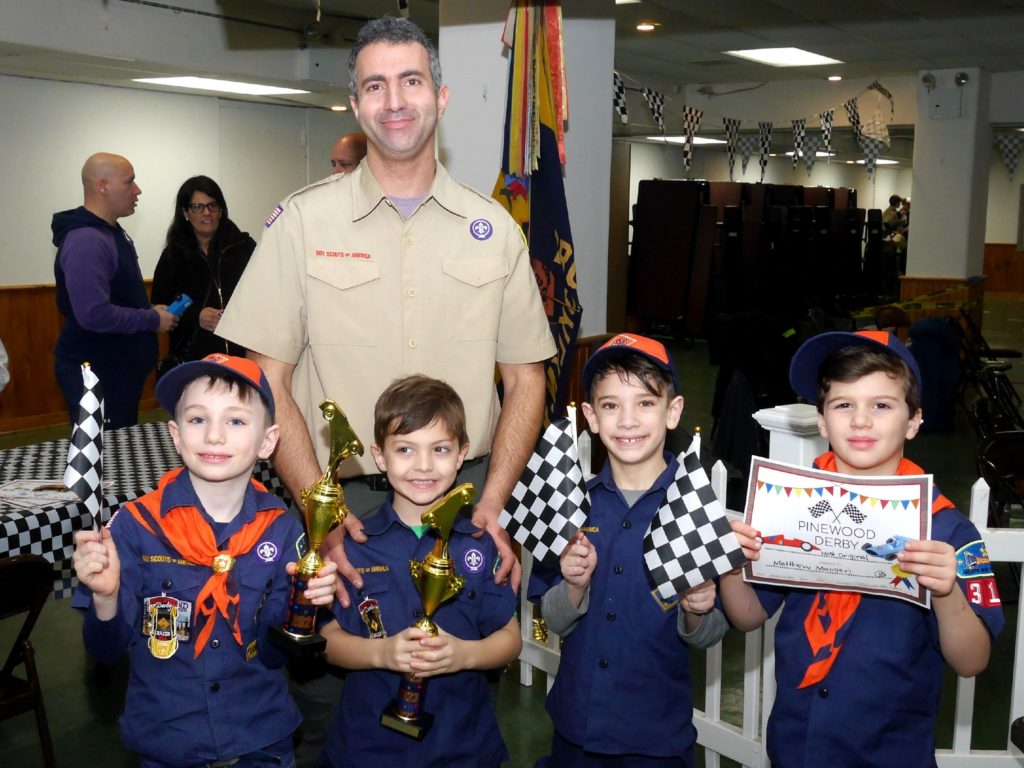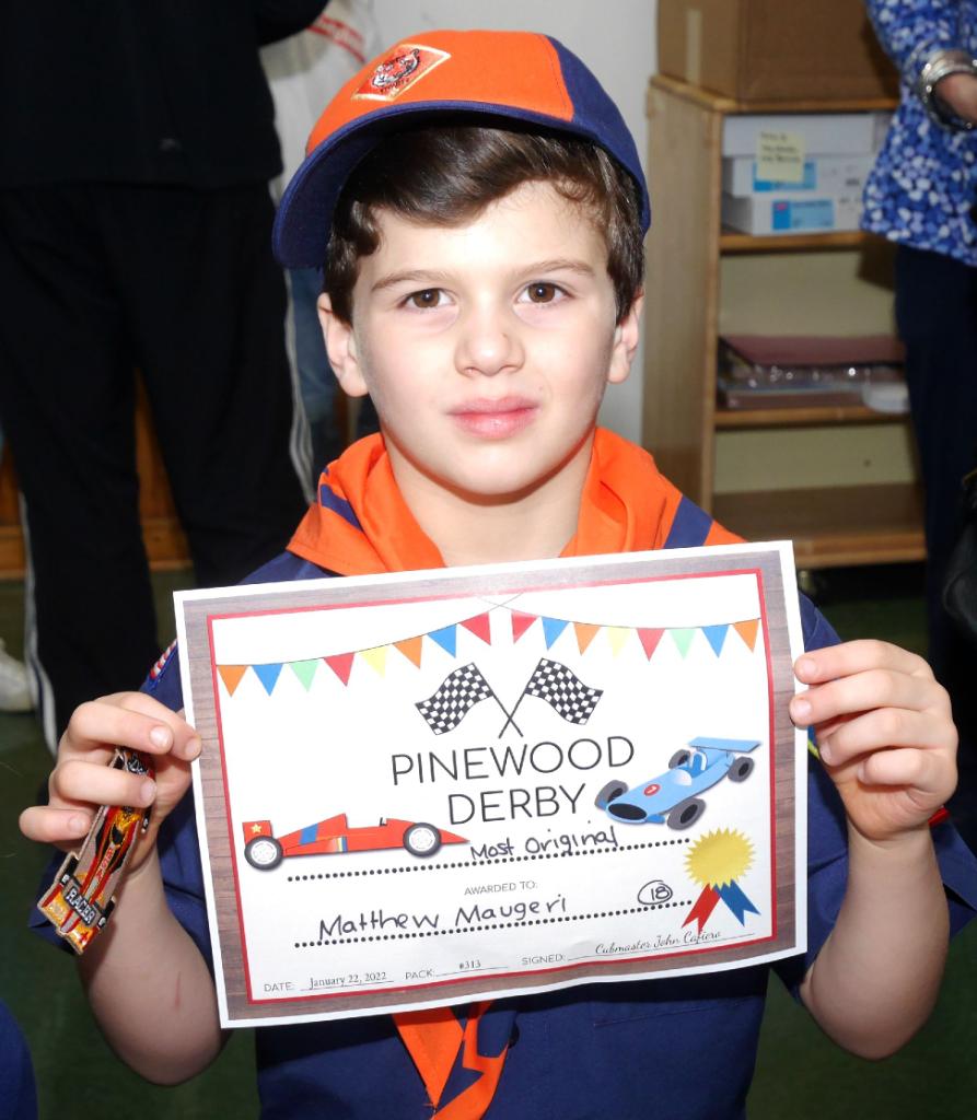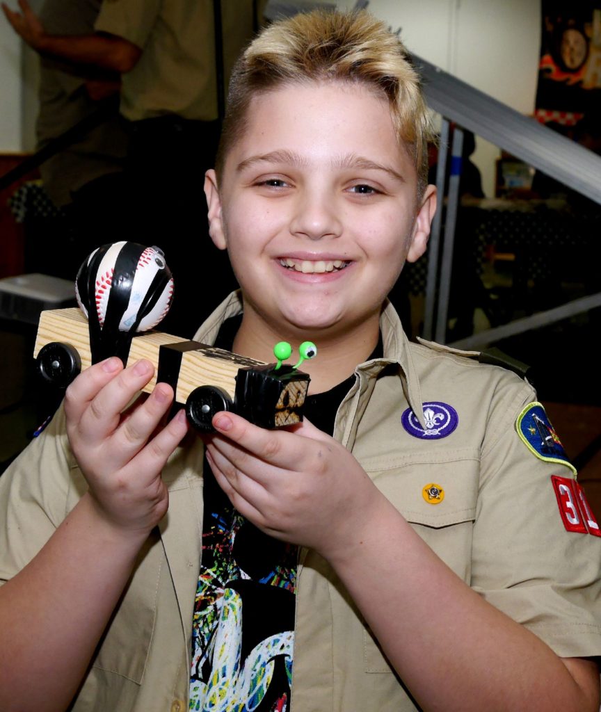 “This is my eighth Pinewood Derby with Pack 313 and it is interesting to see all the different designs the kids come up with,” said Cub Scout Committee Chair Christina Cafiero. “It is fun to keep such a long-running tradition going and get both kids and parents involved.”