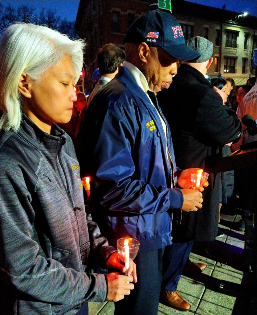 Karen Tadross of Bay Ridge Cares led a moment of silence for Ye.
