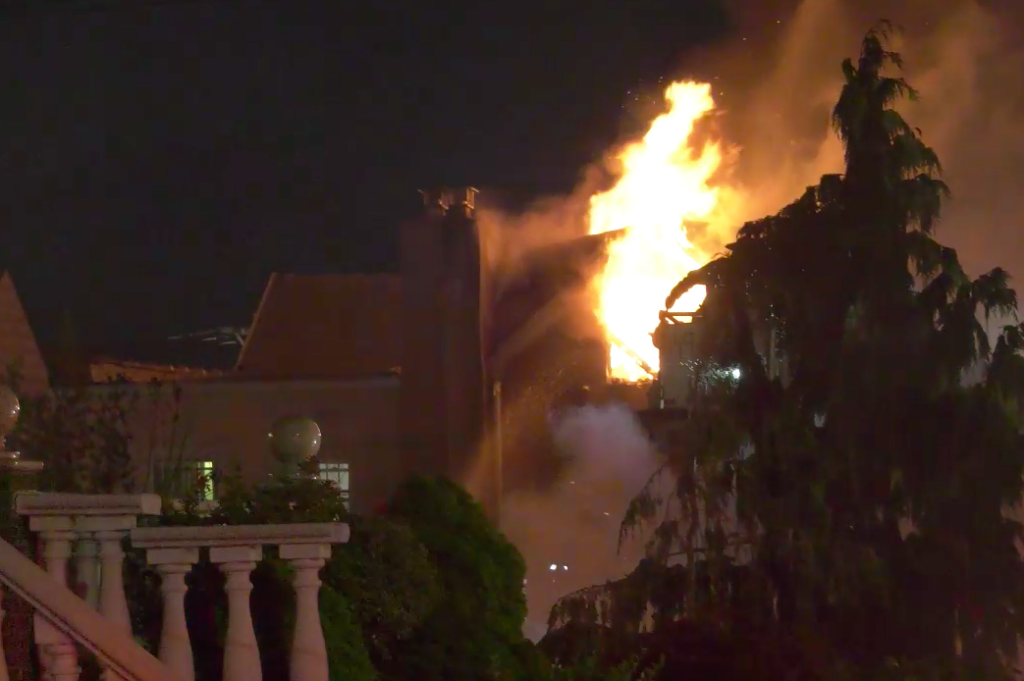 The fire started at around 4:30 a.m. in the attic of the three-story building and spread to the rest of the home. It also damaged a car parked nearby.