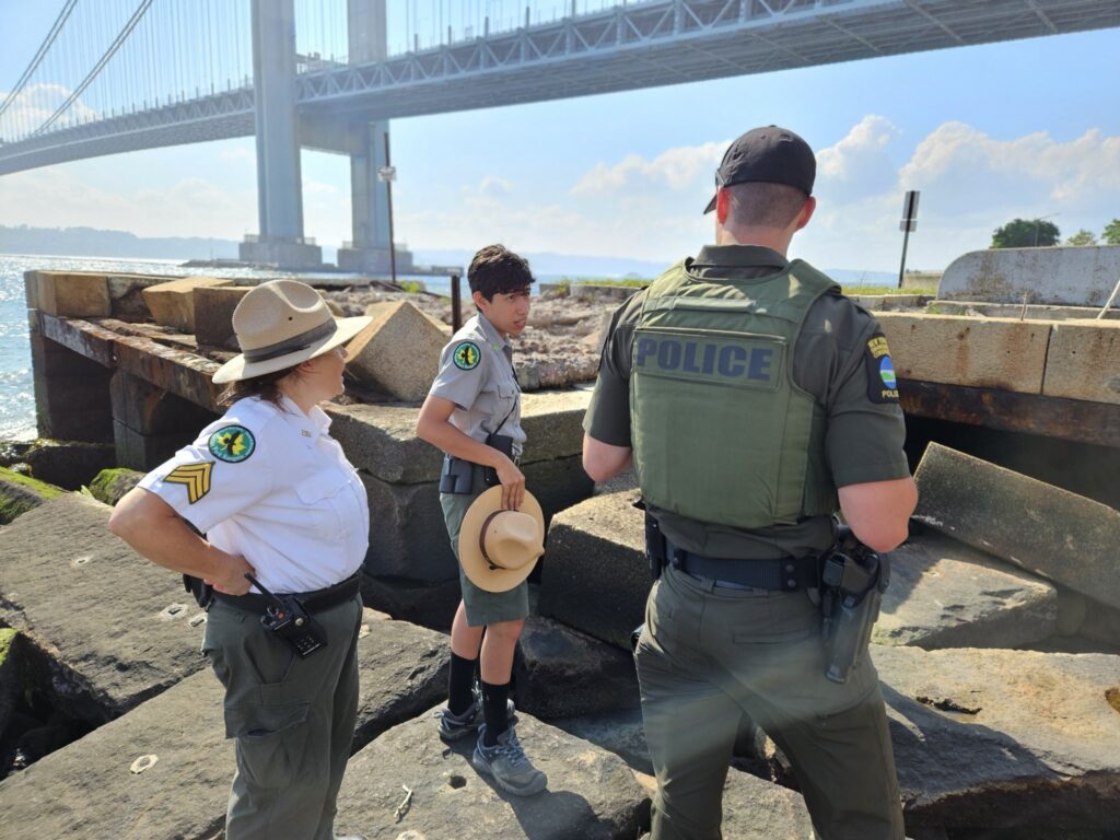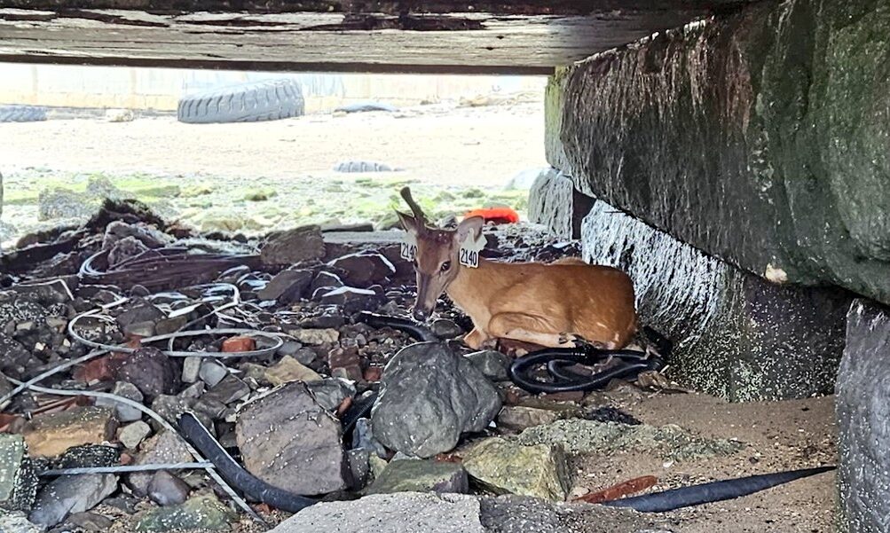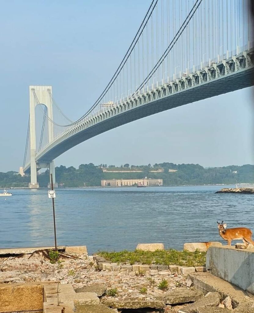 NYC Parks said the animal likely swam to Denyse Wharf from Staten Island. Animal Care Centers of NYC, Urban Park Rangers, the Dept. of Environmental Conservation and the NYPD took part in the rescue.