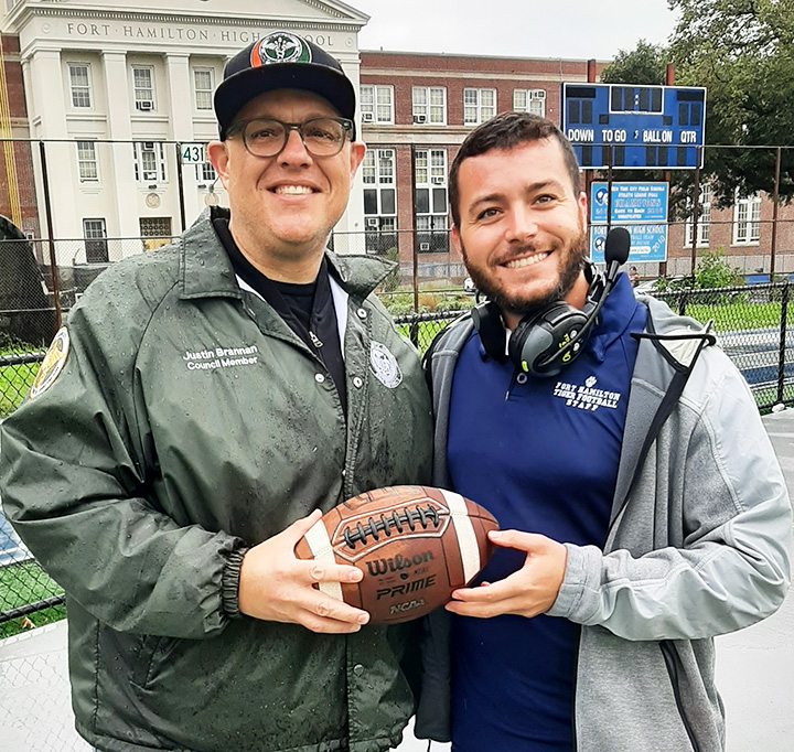 Councilman Justin Brannan attended the game and cheered the Tigers alongside Fort Hamilton Principal Kaye Houlihan. He also sponsored a pizza luncheon for the team after the game.