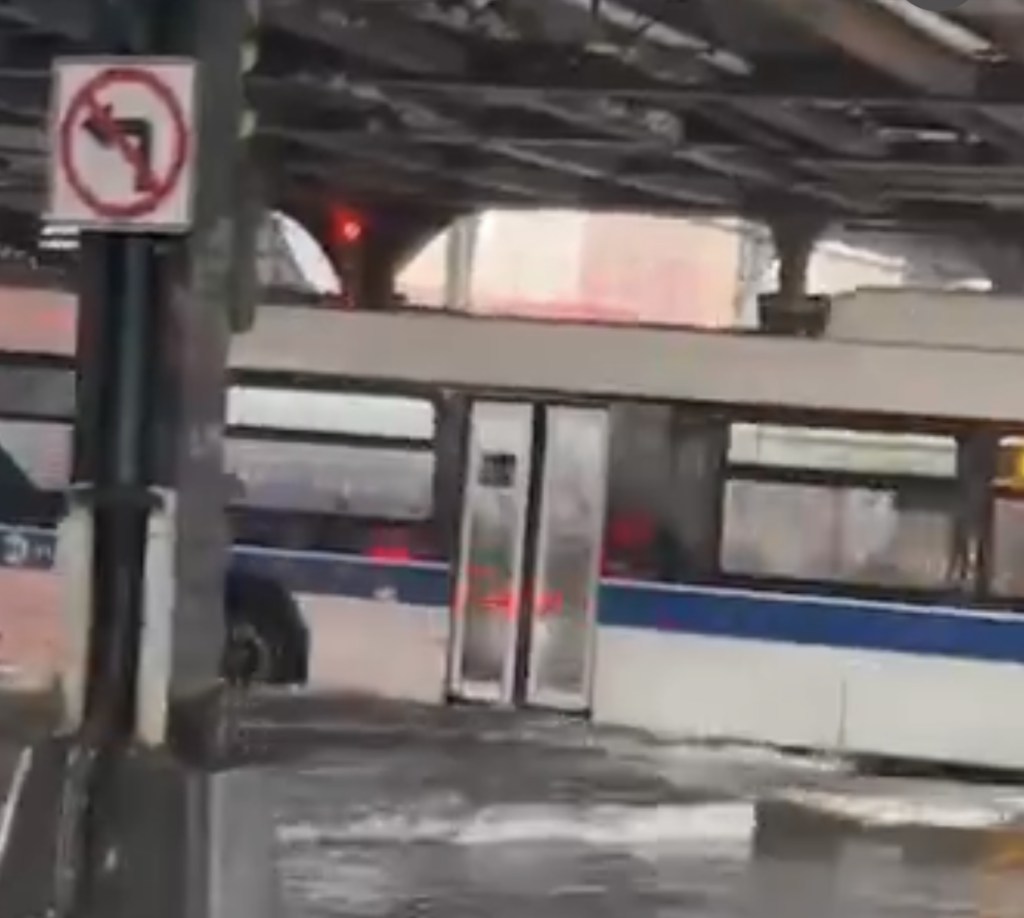 Rain flooded the inside of a bus on 18th Avenue and 60th Street.