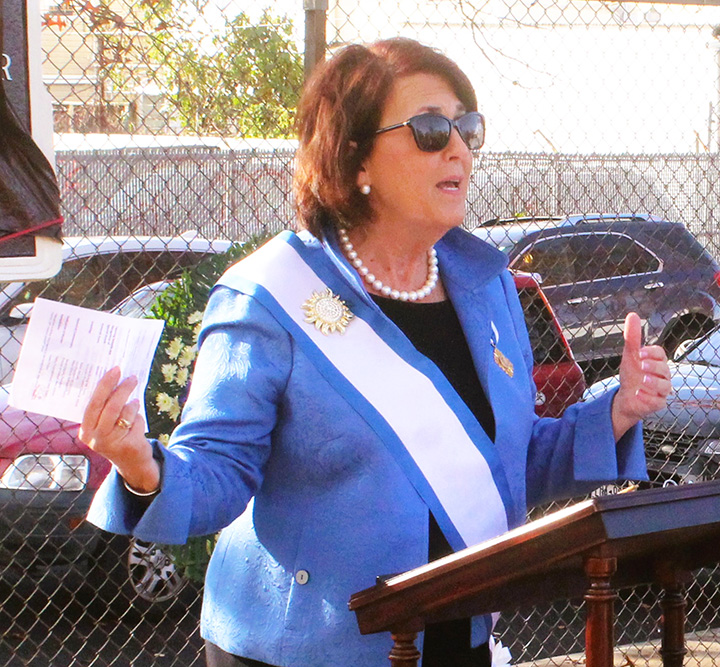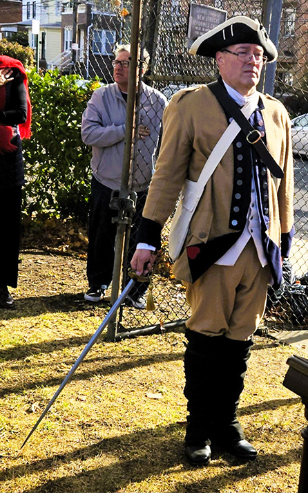 With the presentation of the colors by the color guard from the Battle of Brooklyn Chapter of the Sons of the American Revolution, the Pledge of Allegiance was recited by everyone in attendance. Dawn Frojen, the honorary Brooklyn Chapter DAR regent, conducted the invocation.