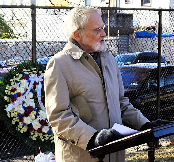 Susan Hanyen, vice president of Consistory, represented the New Utrecht Reformed Church, which owns the cemetery. David Elligers, president of the Friends of Historic New Utrecht, gave an overview and history of the cemetery. Elligers has voluntarily coordinated the care and maintenance of the cemetery for many years and gives frequent tours. The one-acre burial ground was created by Dutch settlers in 1654 in the old Village of New Utrecht, which today is in Bensonhurst.