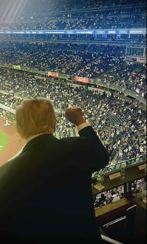 She, along with Yankees President Randy Levine and other officials, joined Trump, who watched the game inside the Steinbrenner family suite.