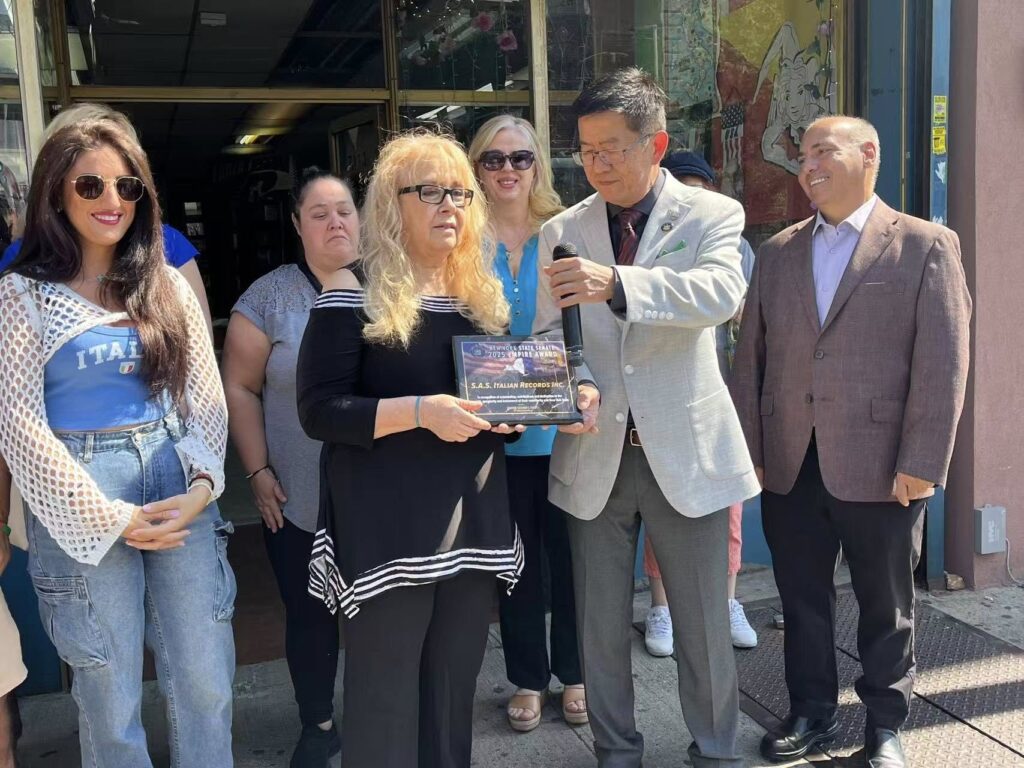 Another popular Bensonhurst shop, SAS Italian Records, 7113 18th Ave., was recognized by State Sen. Steve Chan, who presented it with the New York State Empire Award during a ceremony outside the storefront on Sept. 13.
