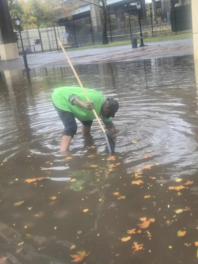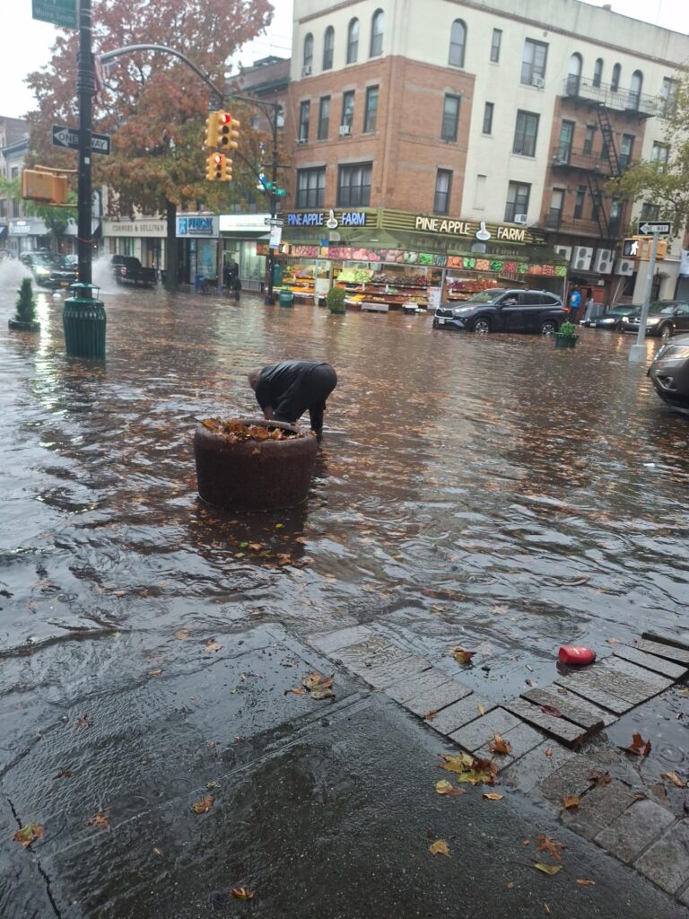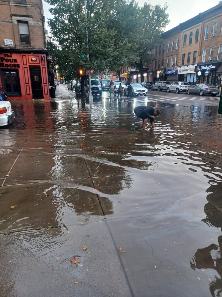 Several blocks in the nabe were flooded, and Valerie Vislocky from NYC Parks helped unclog sewers from Fort Hamilton Senior Recreation Center, 9941 Fort Hamilton Parkway, to Marine Avenue.