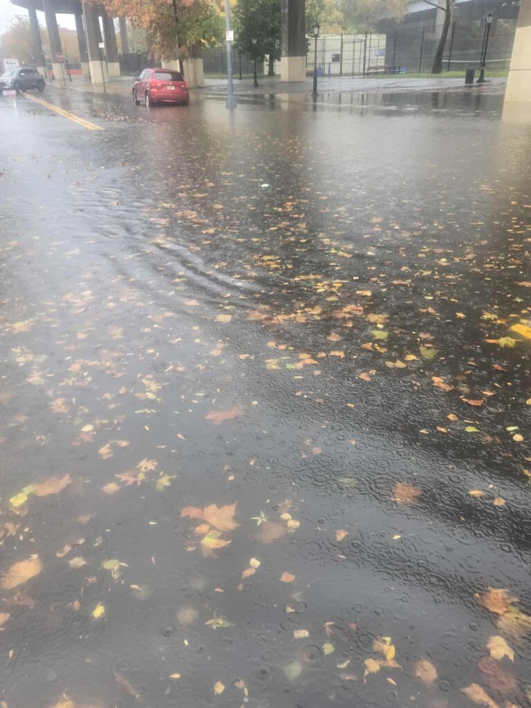 “There were so many fallen leaves clogging the drains and the rain came down so fast,” he said. “Lots of good neighbors cleared the drains. I haven’t seen flooding that bad here in a long time.”