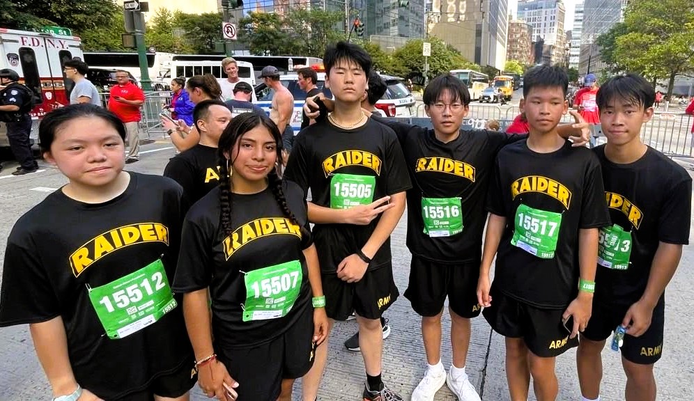 Members of the school JROTC unit’s Raider cadets took part in the 3.5-mile trek starting in Brooklyn near the entrance to the Hugh L. Carey Tunnel and ending on West Street in Manhattan. Other cadets stretched along West Street with large banners showing faces of police officers, firefighters and others who died on 9/11. Army Maj. Sang B. Lee (Ret.) is the senior instructor of the JROTC program.