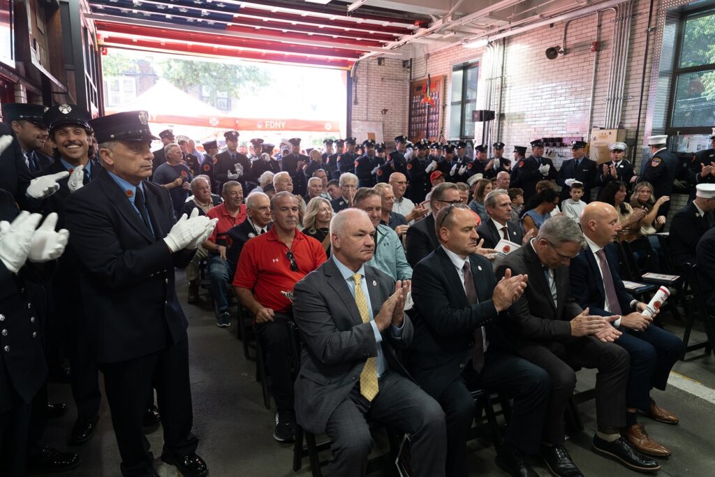 “It’s a once-in-a-100-year opportunity and to be here means a lot to me,” he said. “My brother started his career here in Ladder 153. He loved it here. He loved the camaraderie. The truth of the matter is he loved being a firefighter, and he loved it so much that he did what so many of you would do when you are called to duty.”
