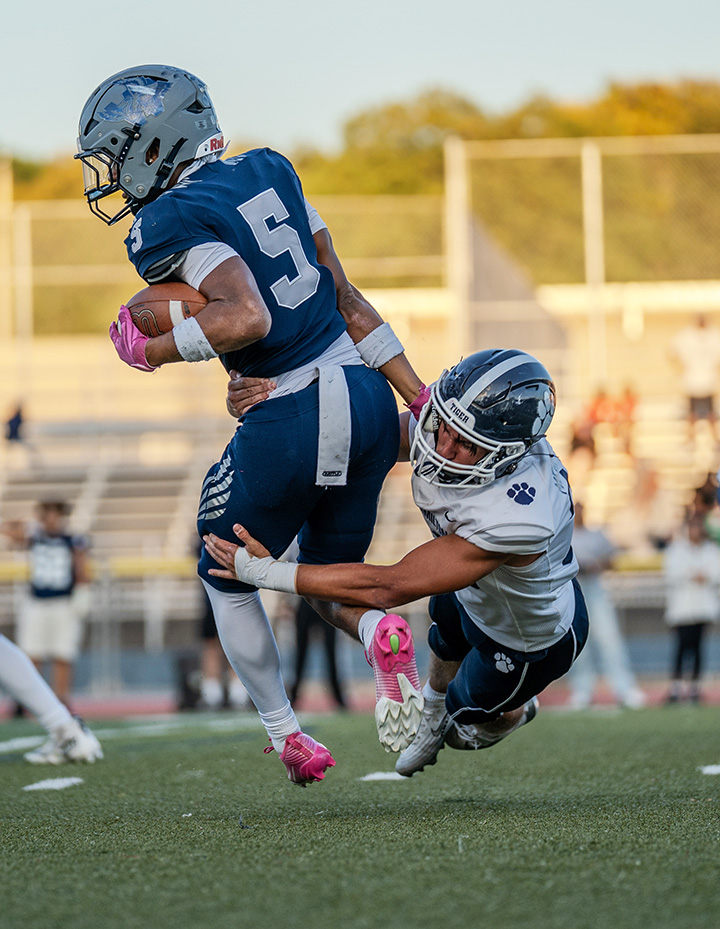 From their very possession, the Falcons scored quickly on a 30-yard run by Kadem Alejandro. On the ensuing kickoff, the Falcons regained the ball on a squib kick and drove down to the 25-yard line where the Tigers’ Thomas O’Neill intercepted to stop the Falcons’ scoring threat to keep the score 7-0 by the end of the first quarter.
