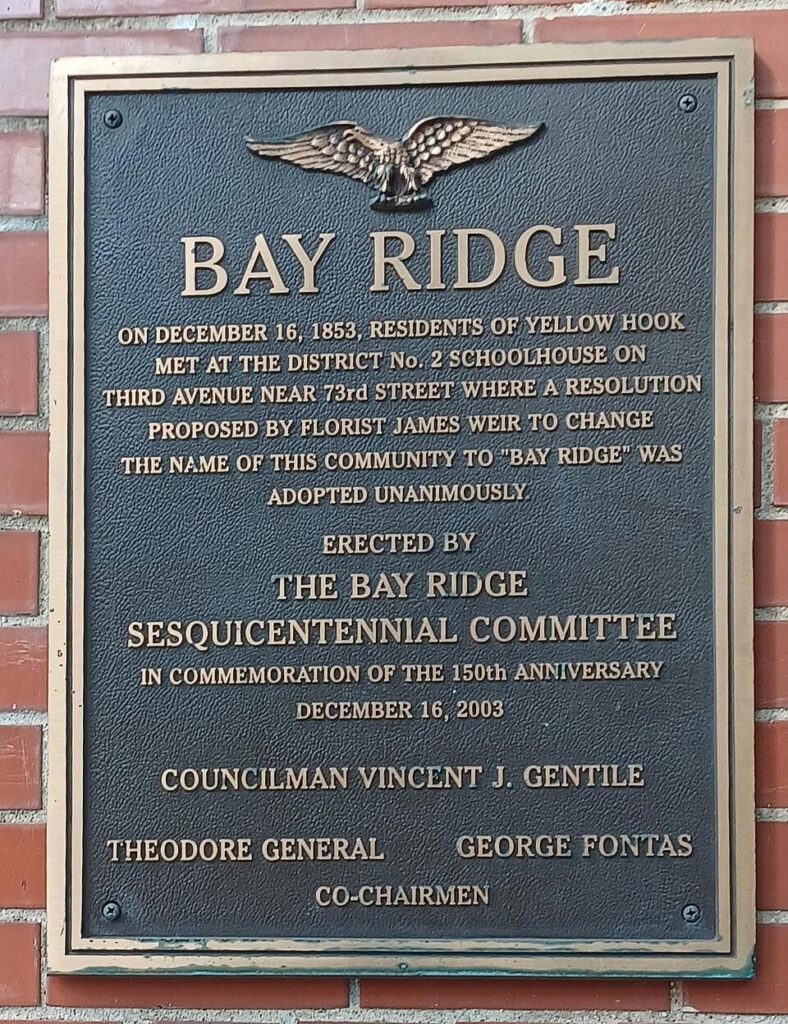 As a result of the 1848-49 yellow fever epidemic in other Brooklyn communities, villagers were especially concerned about the continual stigma of having a name like Yellow Hook. So in the one-story yellow-painted frame school building, a historic meeting was called where a resolution was unanimously passed to change the village name from Yellow Hook to Bay Ridge. Back then Yellow Hook was only a small village within the confines of the Town of New Utrecht.