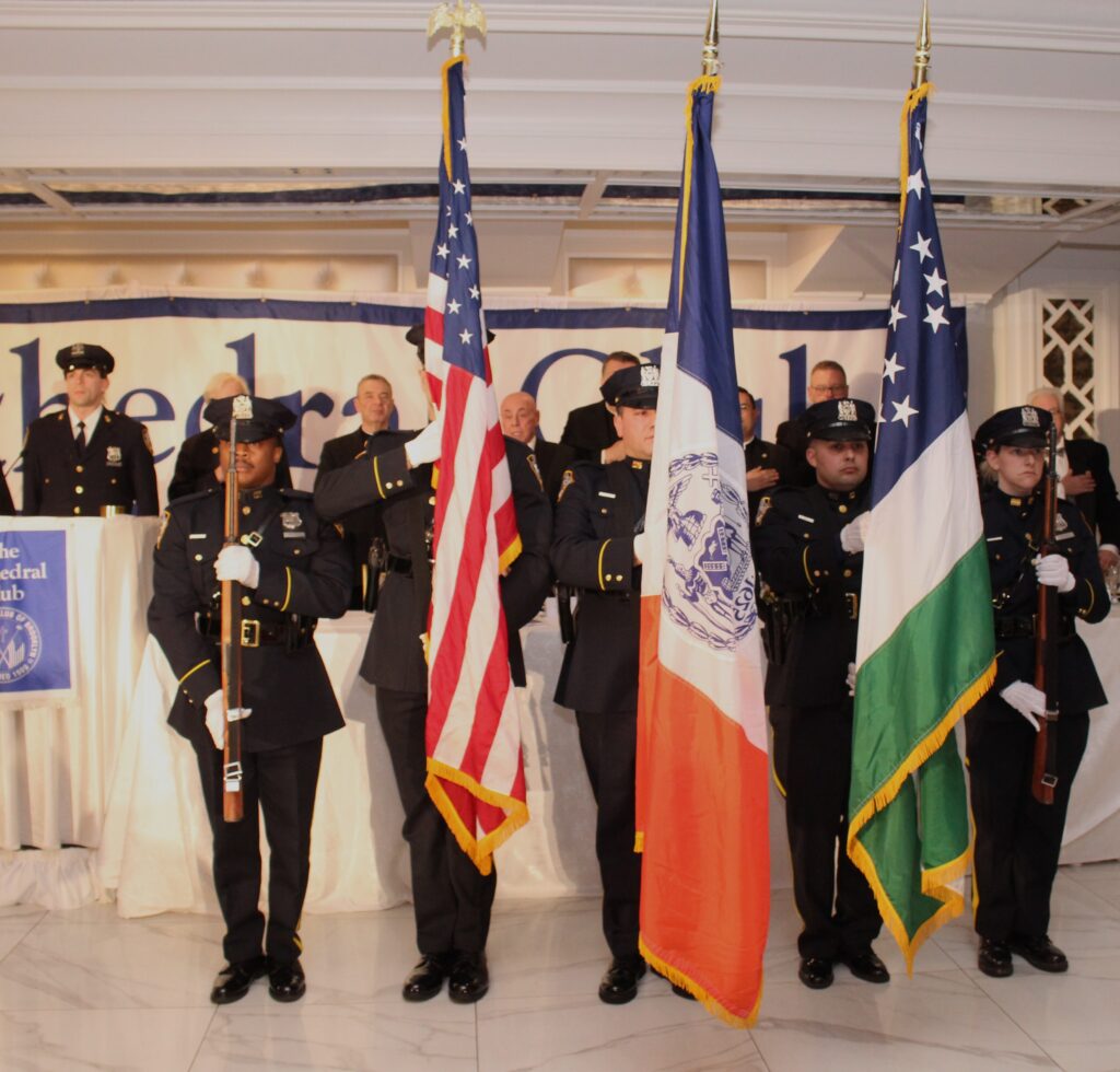 The Xaverian High School Pipe and Drum ensemble provided musical fanfare as the illustrious members of the dais entered the ballroom. Then the NYPD ceremonial unit color guard presented the colors and the national anthem was sung by a police officer.Rev. Michael Falce gave the Invocation and Monisgnor Joseph R. Grimaldi, Diocese vicar general, gave the benediction.