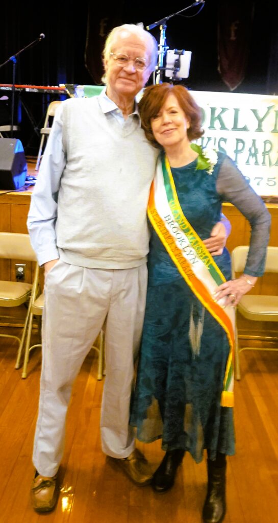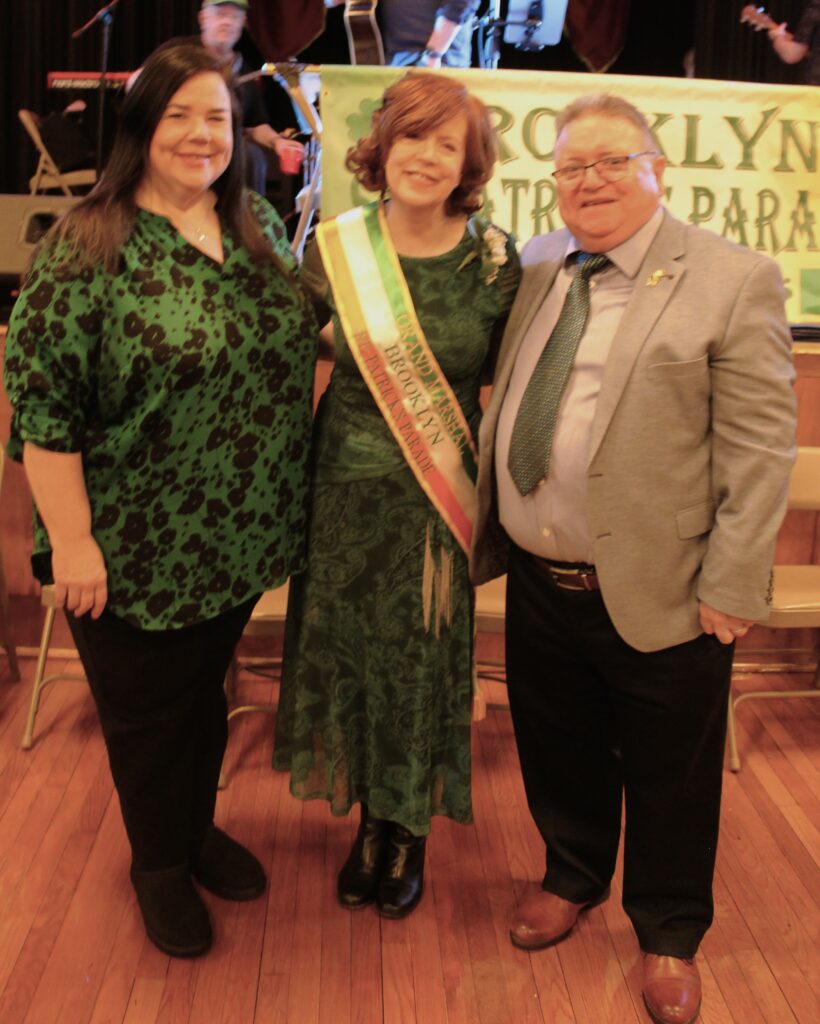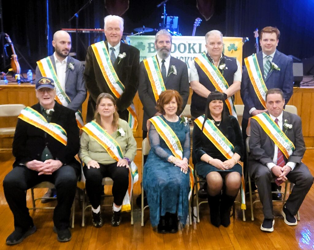 The popular Canny Bros. Band pumped out a nice mix of Irish tunes from the auditorium stage. And the Clann Eireann Pipe and Drums Corps performed as a musical honor guard as 2026 Parade Grand Marshal Magee Hickey and her aides passed from the back of the auditorium, through the ranks of the pipers, front and center to have their parade sashes pinned on by Parade Vice Chairman Mary Hogan. Michelle Brennan-Conlon is the parade chairman.