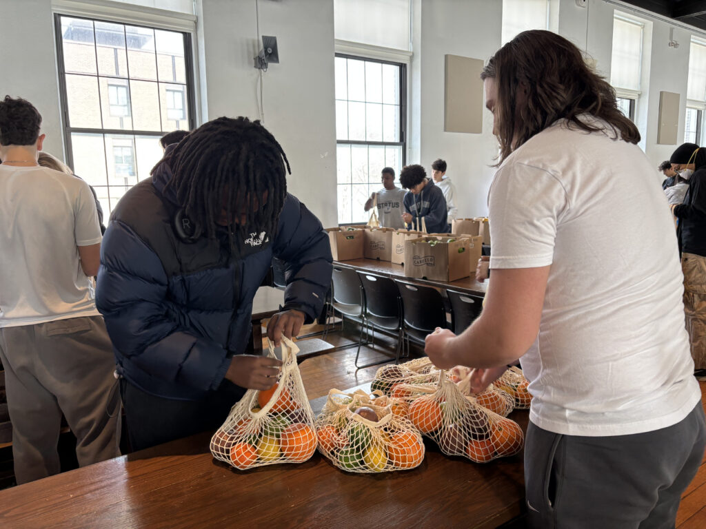 Giskan and Warwick serve on the Service Board at Poly Prep and attend pack-out days to build community and support others. The students decided to combine their interests into a Service Learning Team during their junior year.