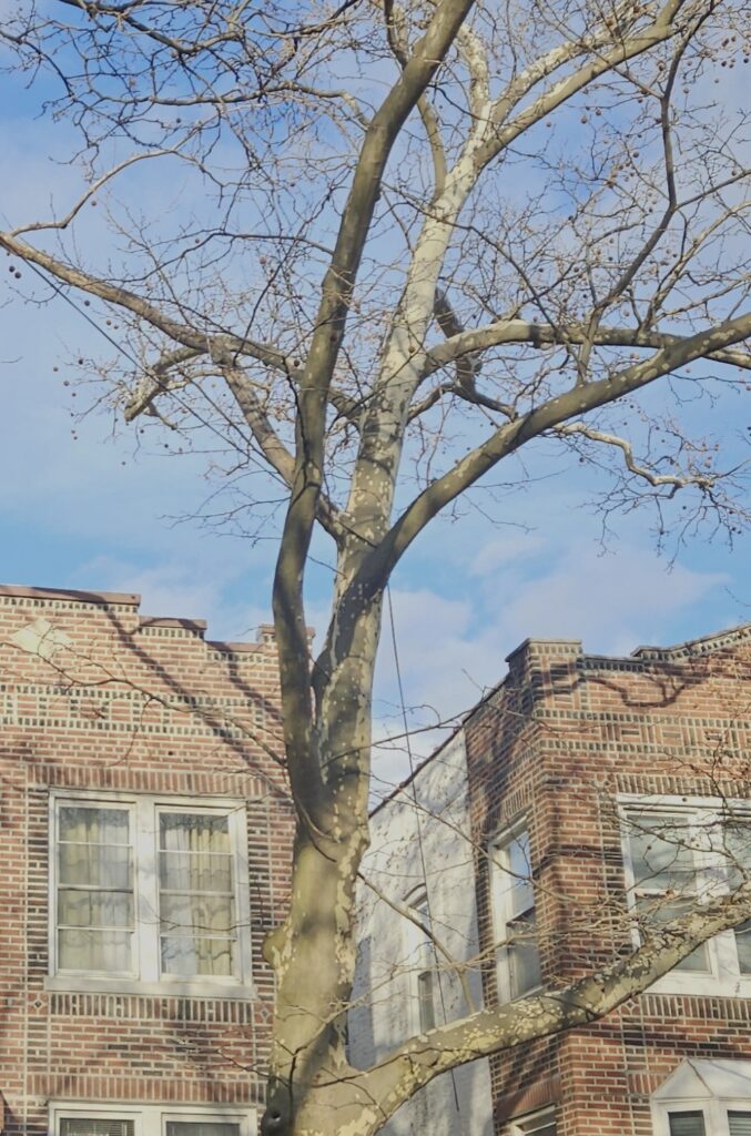 So as a temporary adjustment Con Edison ran a long power cable from a city light pole across the street. They ran the cable from the bottom of a 30-foot streetlight up the pole, through a tree and into the basement. When you consider the 60-foot street plus another 30 feet of sidewalk and driveway, it’s approximately a 90-foot cable run. Plus, on the side of the house they jury-rigged a yellow fiber rope to hold the cable in place.