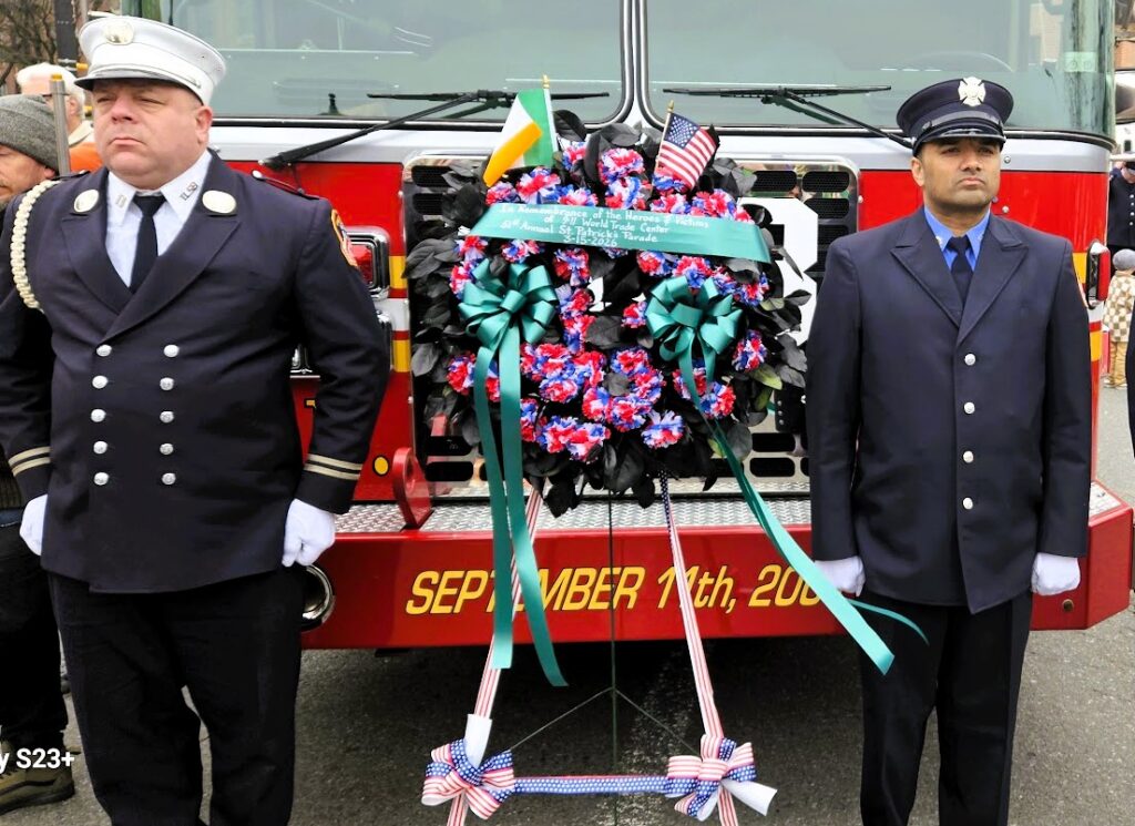 On Sunday, March 15, over at the 51st annual Brooklyn St. Patrick’s Day Parade, we covered the 12:30 p.m. rededication ceremony in memory of the heroes and victims of 9/11, at Prospect Park West and 15th Street. It included a wreath-laying and the playing of the national anthem and “Taps.”